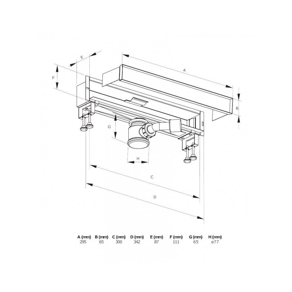 Odpływ liniowy, ścienny 30 cm - ruszt pod płytki.