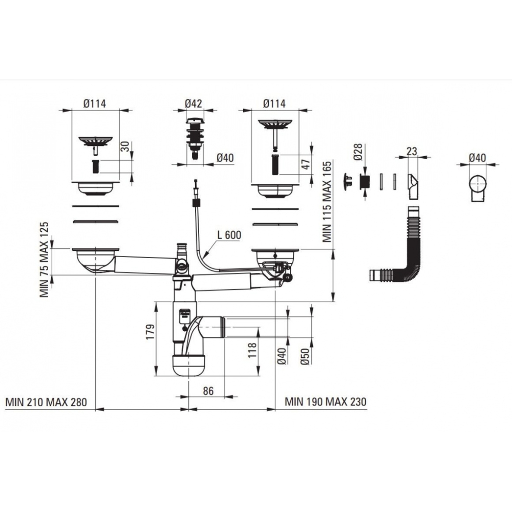 Syfon Space Saver Lux do zlewozmywaków granitowych 1,5 i 2-komorowych.