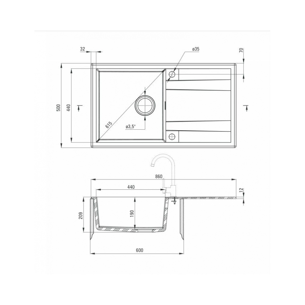– Odpływ: 3,5 cala