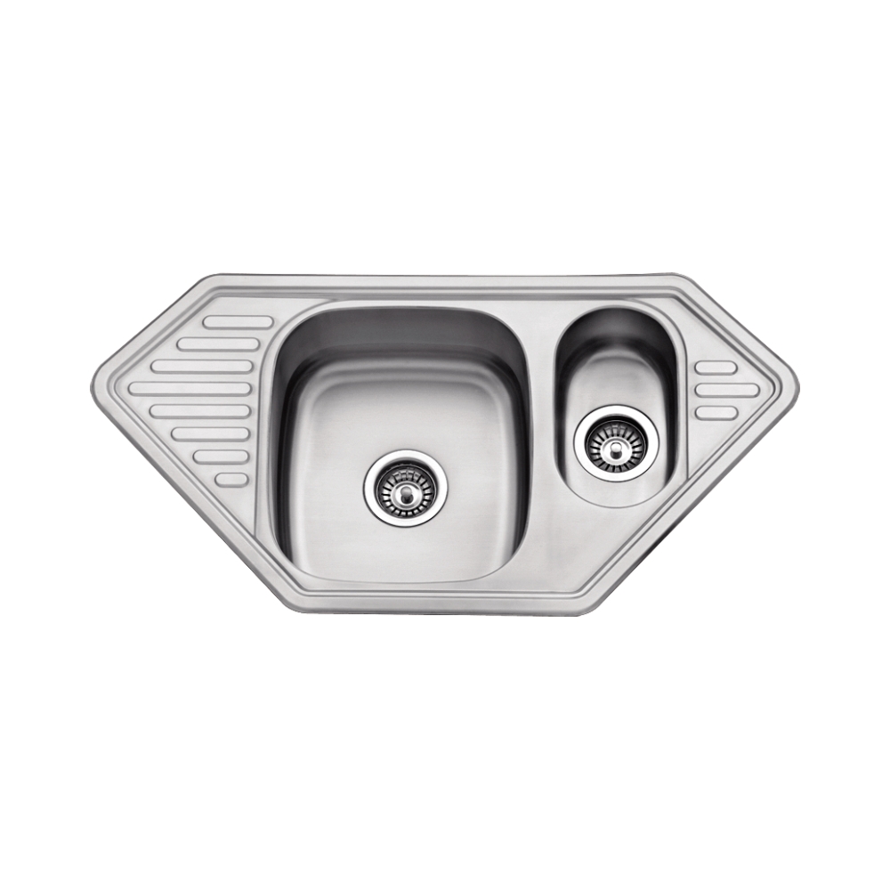 SOLO Zlewozmywak nierdzewny wpuszczany- narożny 1,5-komorowy z ociekaczem 970x500x185 mm z syfonem (os)