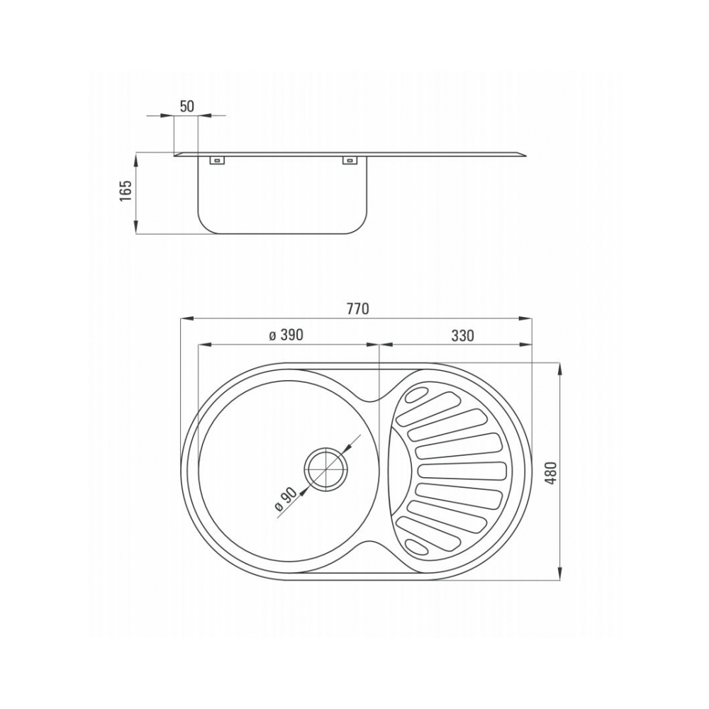 TWIST Zlewozmywak nierdzewny wpuszczany 1-komorowy z ociekaczem 770x480x180 mm z syfonem Dekor