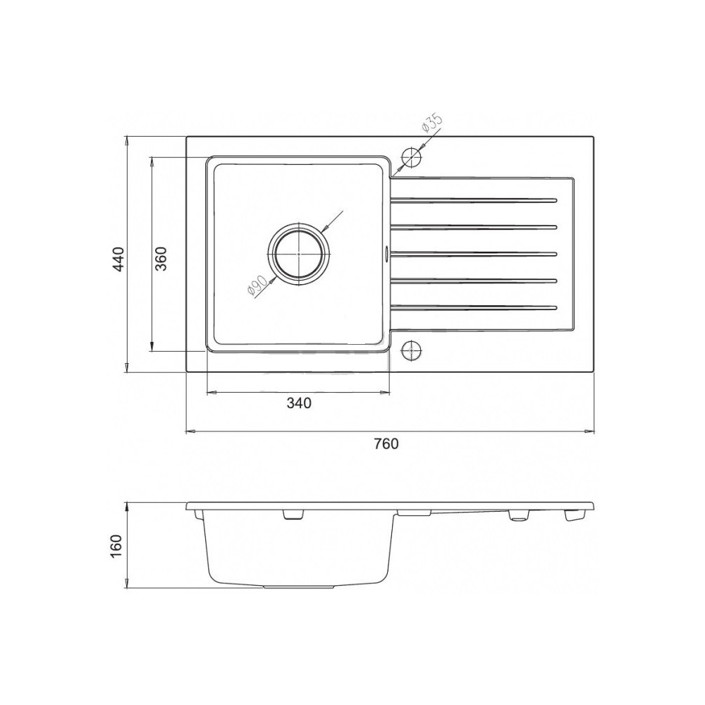 ZORBA Zlewozmywak granitowy 1-komorowy z ociekaczem 760x440x160 mm z syfonem Grafitowy