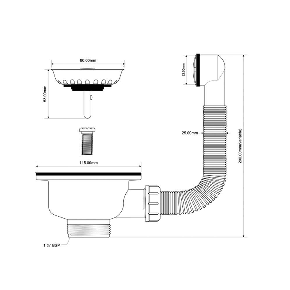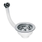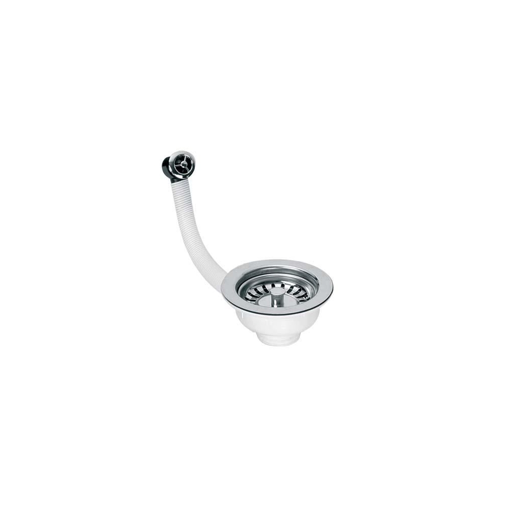 Gardziel od syfonu, do zlewozmywaka 3,5". Zawiera spust plastikowy, z gwintem 6/4", sito metalowe, nierdzewne, z trzpieniem metalowym i przelew okrągły, pionowy (do komory).